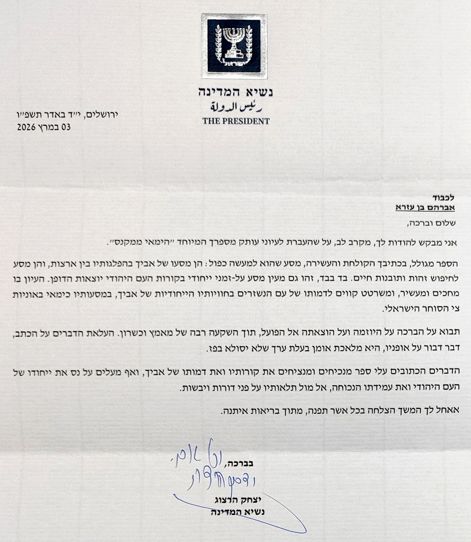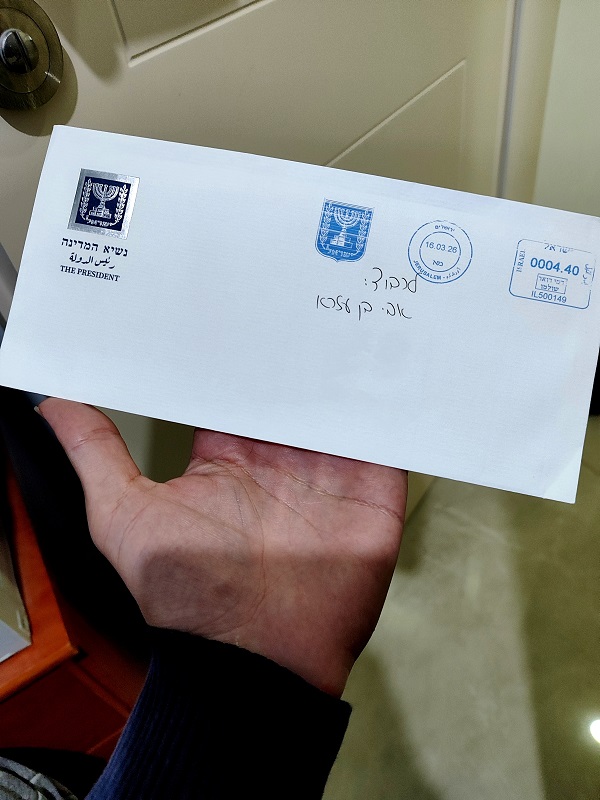 היה די מפתיע ובדיוק בזמן, לגלות כך מכתב שנשלח היישר מהנשיא והתקבל ממש ביום הולדתי...