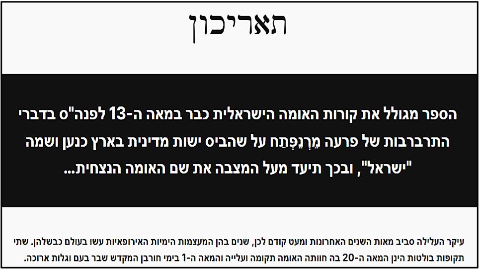 בספר משולבים פריטי ארכיאולוגיה מסקרנים להיסטוריה היהודית בארץ ישראל, להם משמעות יתרה בימינו אנו, כאשר יש המנסים לערער על יסודות המורשת ההיסטורית הזו (ראו תאריכון):