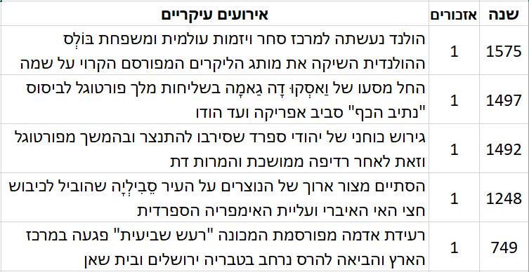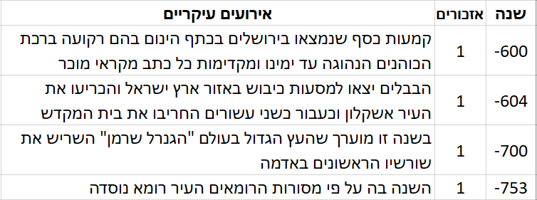 עיקר העלילה סביב מאות השנים האחרונות ומעט קודם לכן, שנים בהן המעצמות הימיות האירופאיות עשו בעולם כבשלהן. שתי תקופות בולטות הינן המאה ה-20 בה חוותה האומה תקומה ועלייה והמאה ה-1 בימי חורבן המקדש שבר בעם וגלות ארוכה.